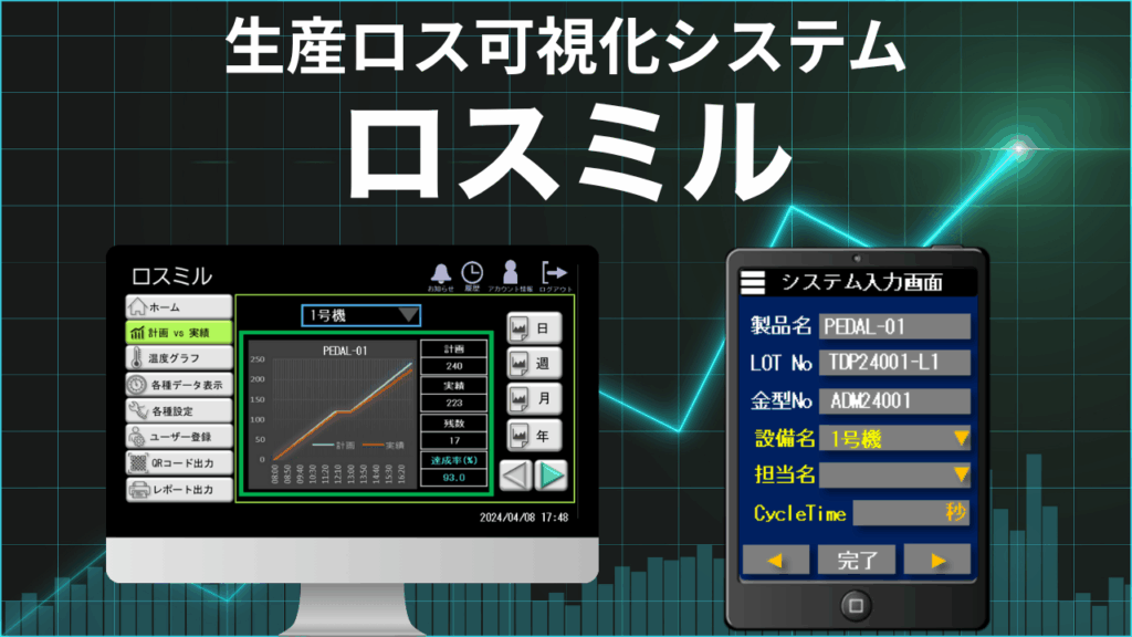 「ロスミル」は、製造現場で発生している 生産ロス(材料ロス・不良品・計画未達など)を“見える化”するシステム です。