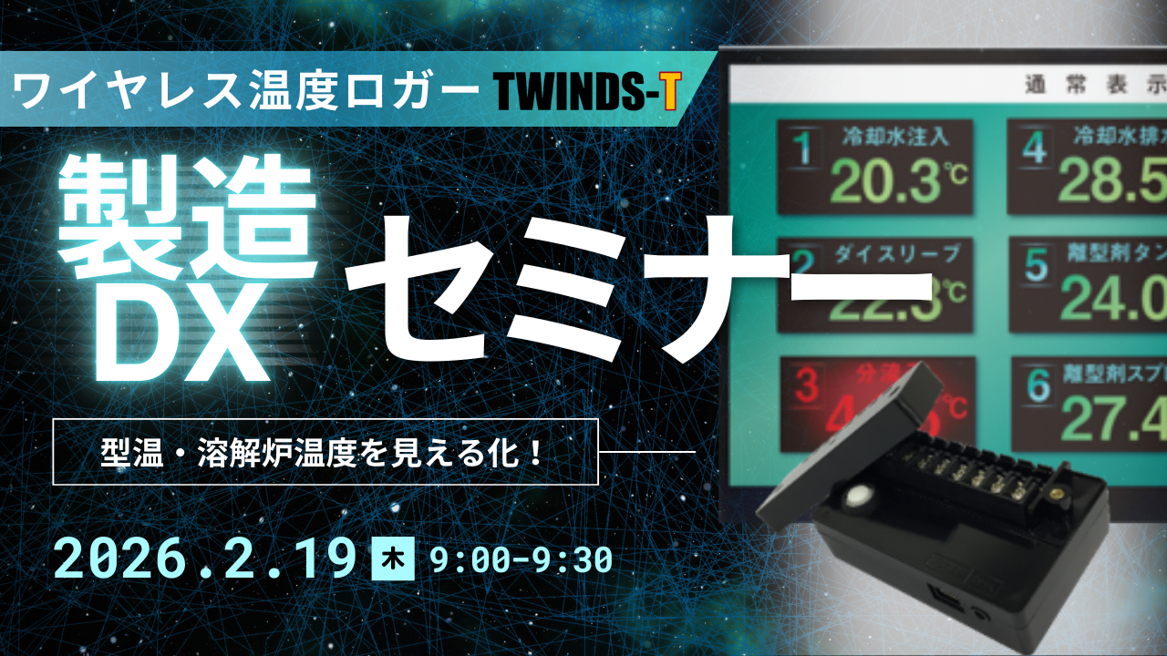 この度、2/19(木)に下記のワイヤレス温度ロガー『TWINDS-T』に関するWebセミナーを開催させていただきます。