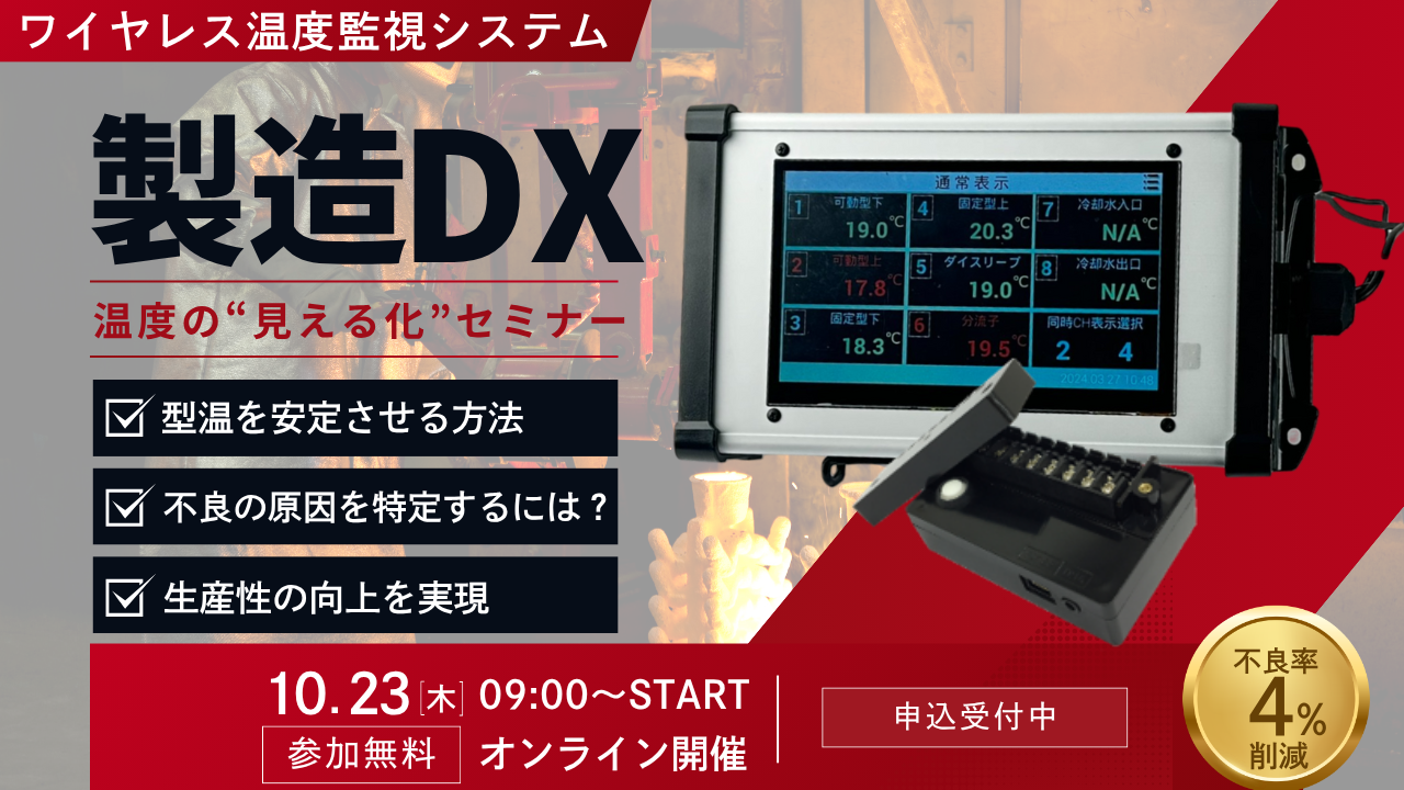 タイトル:工場の金型/溶解炉温度見える化ワイヤレレス温度ロガー オンラインセミナー
