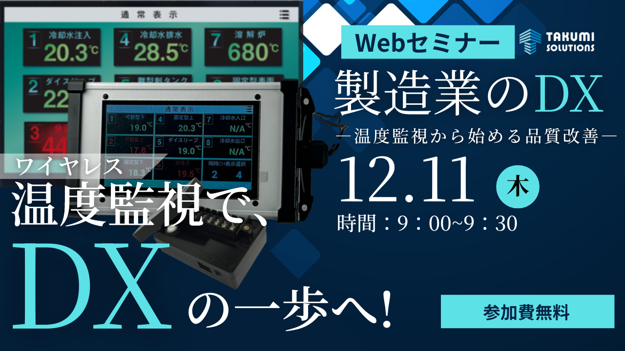 日頃から、「DX化」「温度の可視化」に取り組まれている皆さまや、工場のDX化にご興味のある方に是非ご参加いただけますと幸いです。