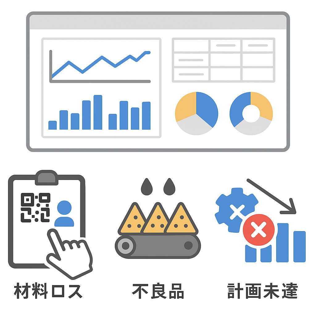 「ロスミル」は、製造現場で発生している 生産ロス(材料ロス・不良品・計画未達など)を“見える化”するシステム です。